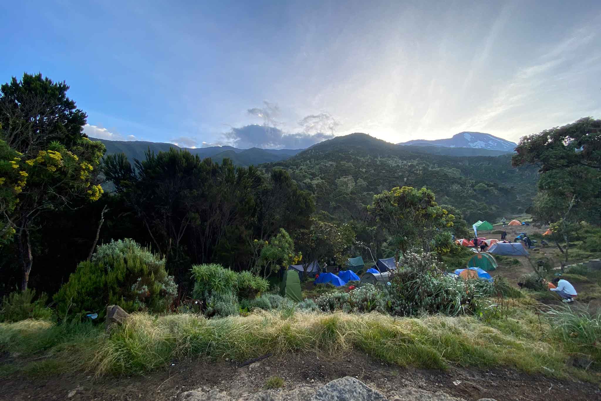 Kikelewa Camp (3,600 m/11,810 ft): Amid expansive heathlands with giant heathers and wildflowers; panoramic vistas of Kibo and eastern icefields.