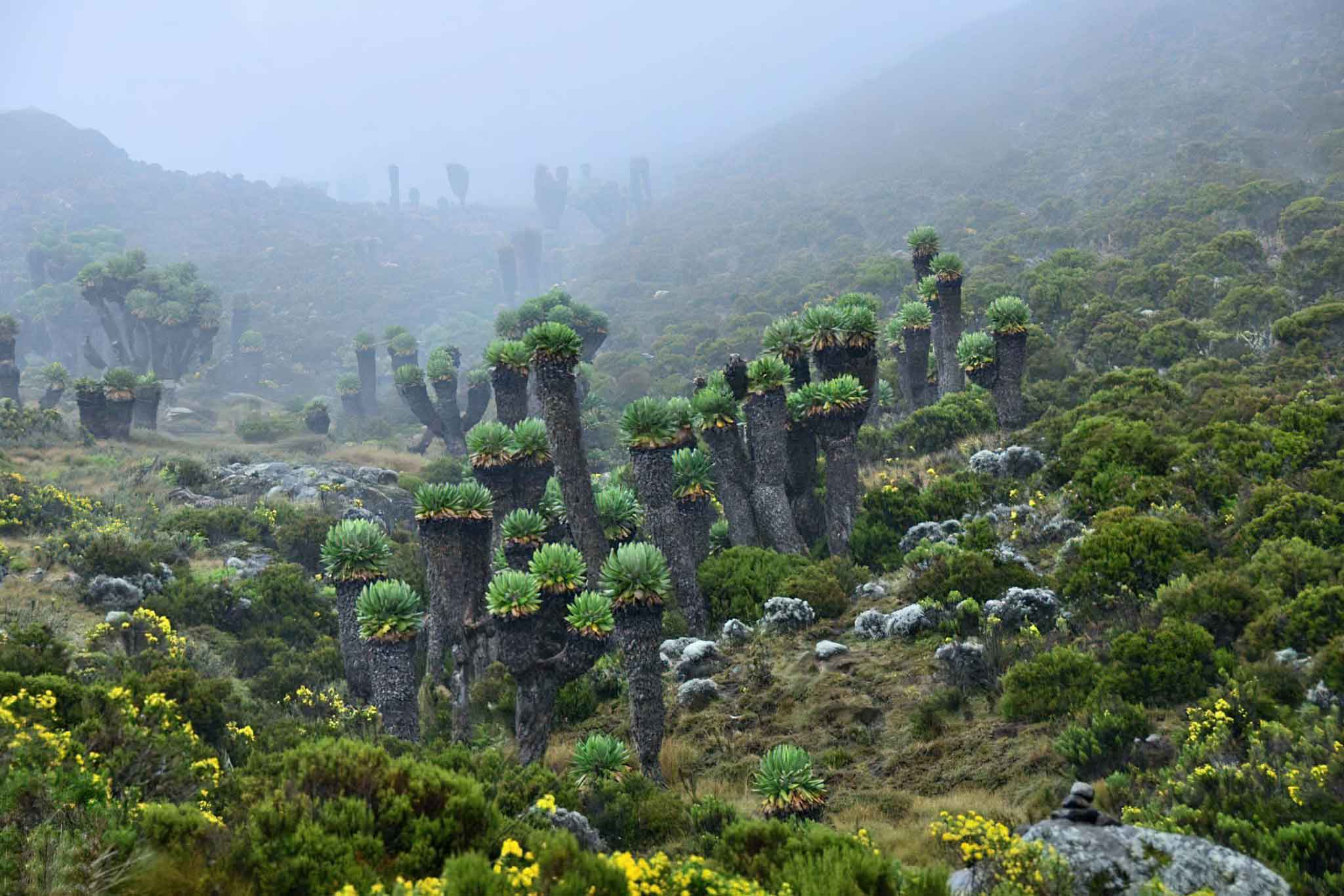 Terrain: Pine and montane forests, heather moorlands, alpine deserts with giant senecios, and arctic glacial zones.