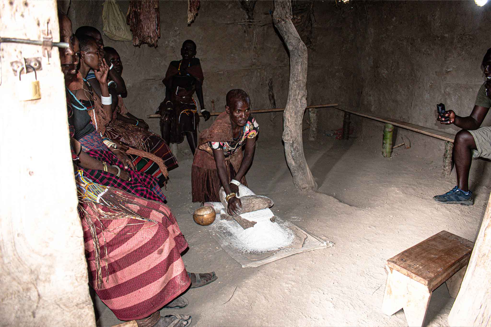 Traditional Datoga Grain Milling Ceremony in a Mud Home