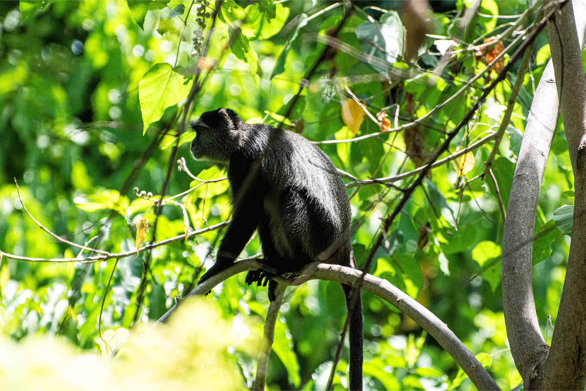 Lush evergreen forest hides massive-tusked bull elephants and troops of blue monkeys crashing through the canopy. Sykes’ monkeys and olive baboons add constant entertainment.