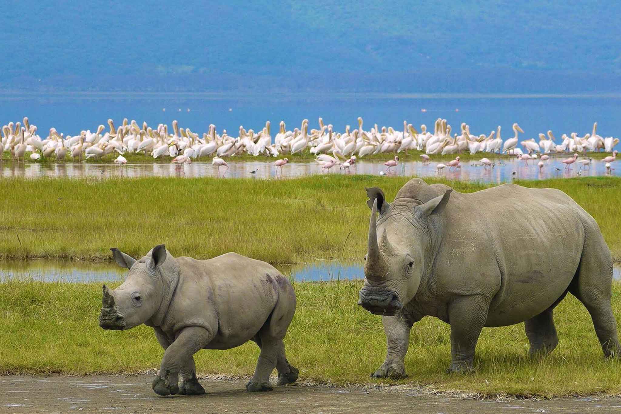 Lake Magadi & Flamingo Shore Drive to the soda lake that flashes pink with lesser flamingos. Hippos wallow in freshwater pools while golden jackals trot the shoreline. Serval cats ghost through tall grass hunting rodents.